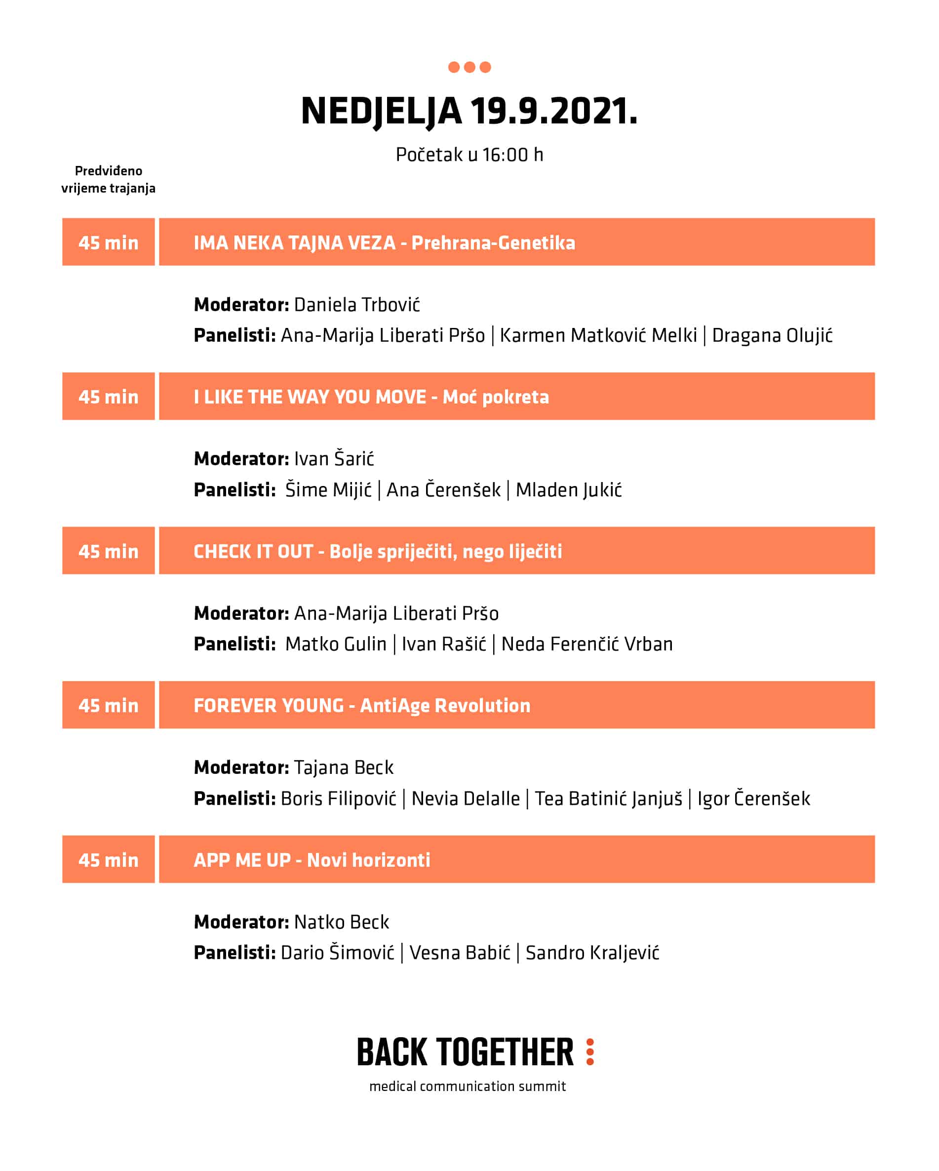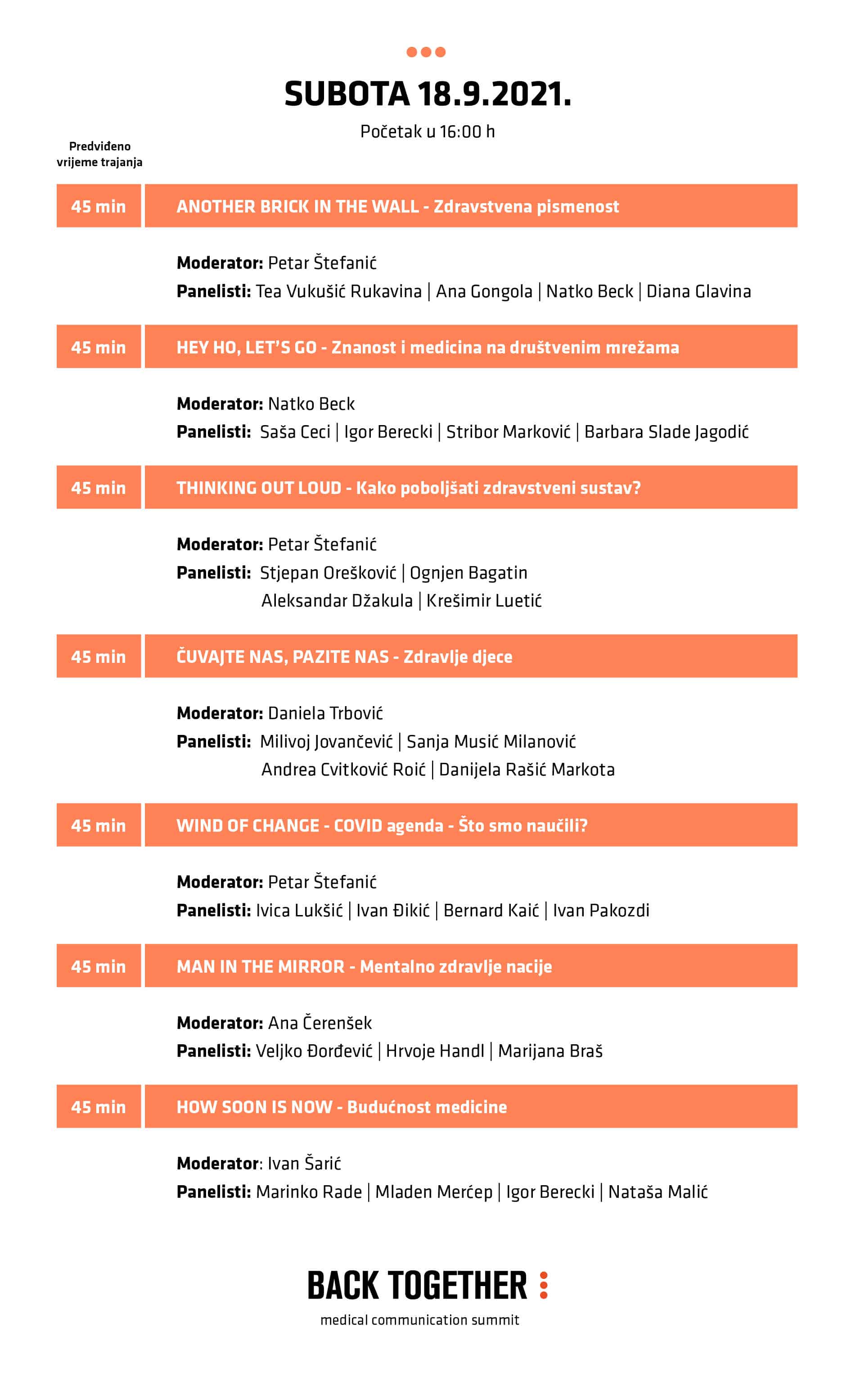 Dovoljno je registrirati se besplatno i 18. i 19.9. pratiti summit. U skladu s epidemiološkom situacijom, back together ove godine održava se u hibridnom obliku. Multidisciplinarna predavanja vodećih stručnjaka bit će moguće pratiti on-line uz prijenos događanja i besplatno sudjelovanje.